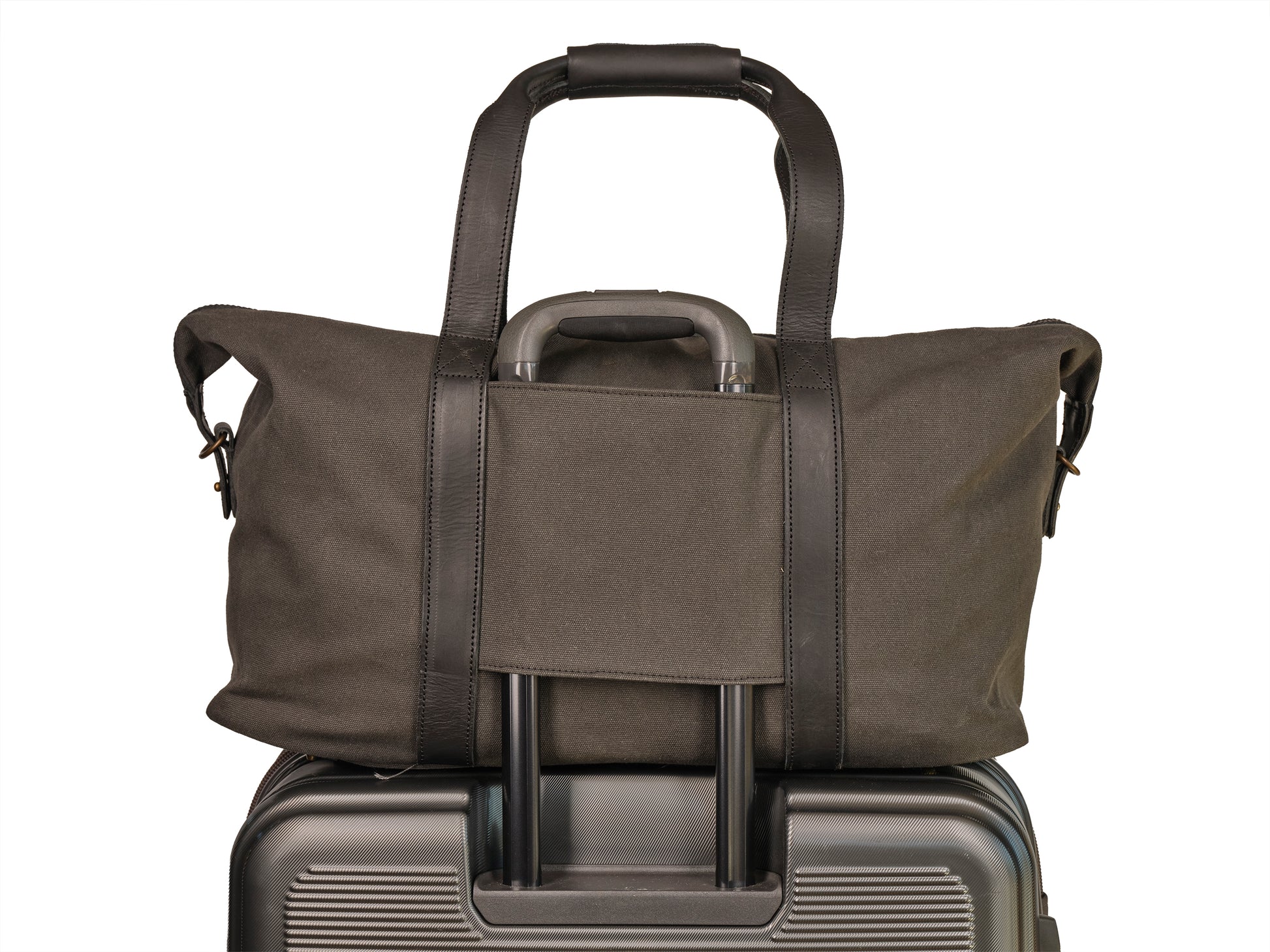 The Rigsby Voyager is a stylish, durable travel bag, crafted from heavy-duty 100% cotton canvas and veg tan leather,